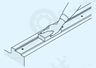 · 請用油石等去除安裝直線導軌的機械、裝置的安裝面及安裝基準面上的毛刺和傷痕,并用干凈的布擦拭。