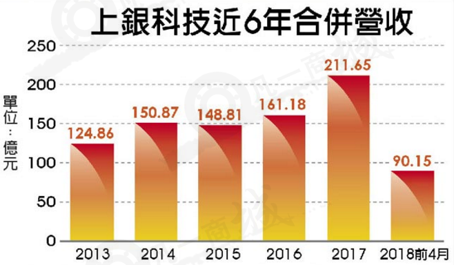 上銀取得日本豐田汽車集團認證多時,直到去年終于打入日本豐田、本田、日產及鈴木等汽車大廠設備供應鏈體系,全球半導體擴建新廠,汽車電池、工具機及光電等產業景氣不墜,上銀4月合并營收24.62億元再度改寫單月營收新高,月增3.24%,年成長50.04%;前4月合并營收90.15億元,年成長51.75%,締造同期歷史新高,目前部分產品從接單到出貨要1年以上。