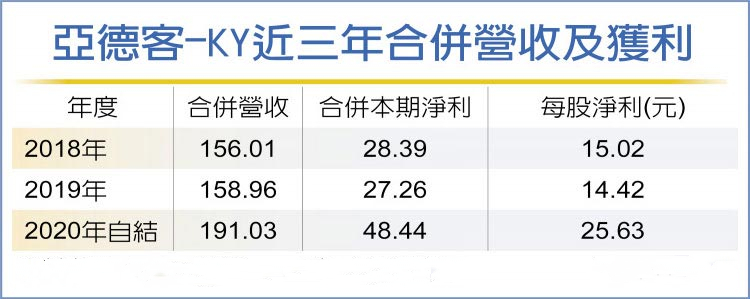 2020年合并營收191.03億元、營業利益59.62億元、認列匯兌利益人民幣8,100萬元、稅后凈利48.44億元,EPS攀升至25.63元,也創史上新高。