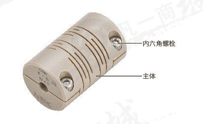◆在圓柱材料上開槽、完全一體構造的樹脂彈簧聯軸器。