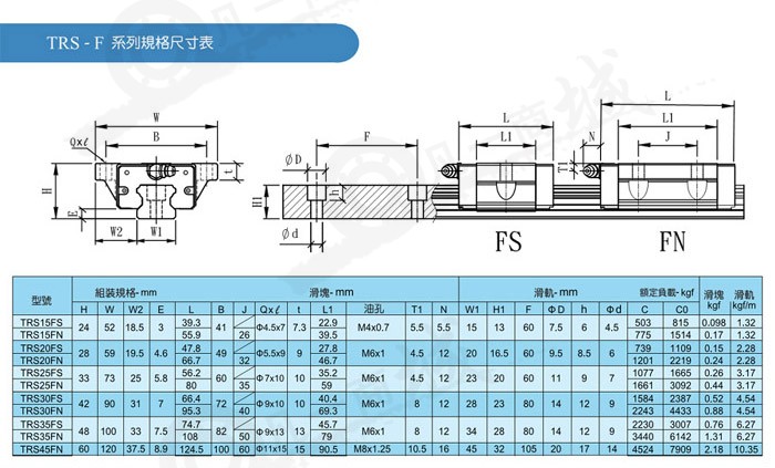 TBI直線導軌為一種滾動導引,借由鋼珠在滑塊與滑軌之間作無限滾動循環(huán),負載平臺能沿著滑軌輕易地以高精度作線性運動。與傳統(tǒng)的滑動導引相較,滾動導引的摩擦系數(shù)可降低至原來的1/50,由于起動的摩擦力大大減少,相對的較少無效運動發(fā)生,故能輕易達到μm級進給及定位。再加上滑塊與滑軌間的束制單元設計,使得直線導軌可同時承受上下左右等各方向的負荷,上述陳列特點并非傳統(tǒng)滑動導引所能比擬,因此機臺若能配合滾珠螺桿,使用直線導軌作導引,必能大幅提高設備精度與機械效能。